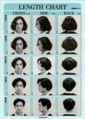 メンズヘアオーダー用と1人のモデルを段階的にカットするヘアチャートは、